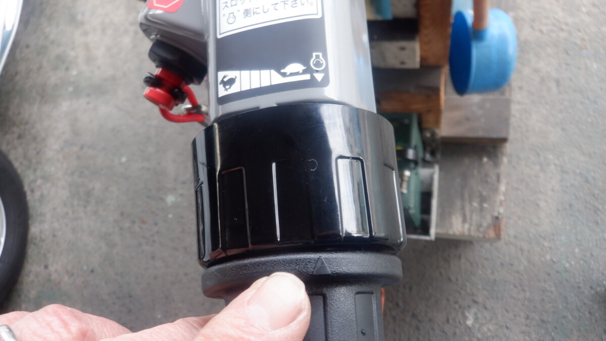 エンジンの始動前はスロットルグリップを触らないのが無難です。