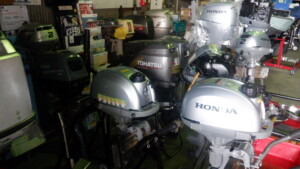 納品待ちや整備後引取待ち、点検や整備待ち及び整備中でお預かりの船外機が
